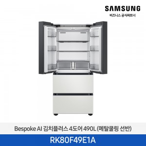 • ★으뜸효율★[삼성][490리터][25년 NEW] BESPOKE AI 김치플러스 4도어 490L (메탈쿨링 선반) [RK80F49E1A] 10월