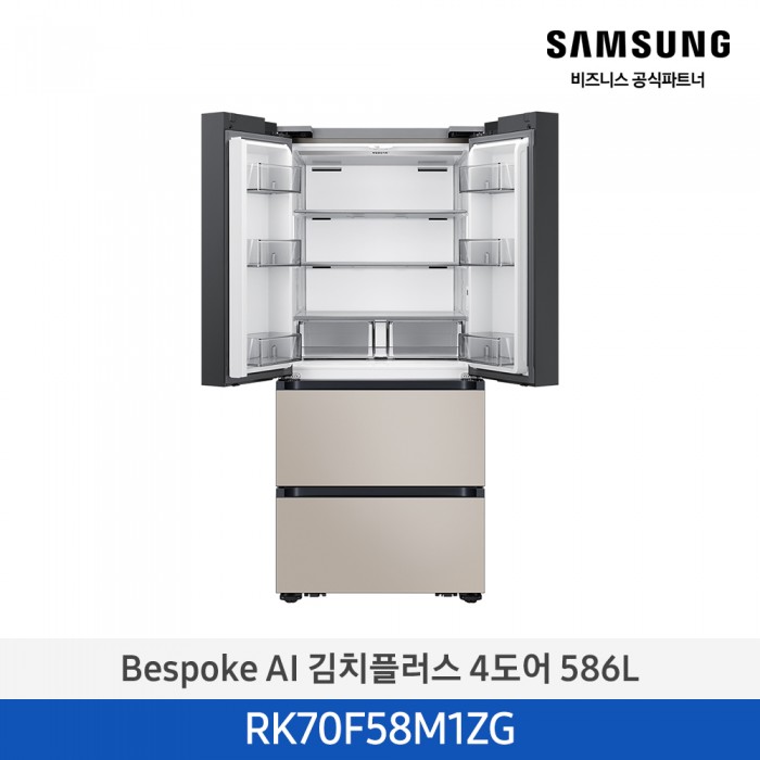 • ★으뜸효율★[삼성][586리터][25년 NEW] BESPOKE AI 김치플러스 4도어 586L [RK70F58M1ZG] 10월