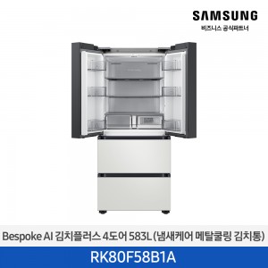 • ★으뜸효율★[삼성][583리터][25년 NEW] BESPOKE AI 김치플러스 4도어 583L (냄새케어 메탈쿨링 김치통) [RK80F58B1A] 10월