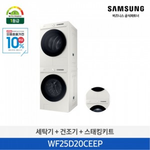 [12개월무이자]★으뜸효율★[삼성][오토오픈도어] Bespoke AI 세탁기+건조기(올인원컨트롤)(세탁25kg+건조20kg)/그레이지) [WF25D20CEEP] 10월 요약정보 및 구매