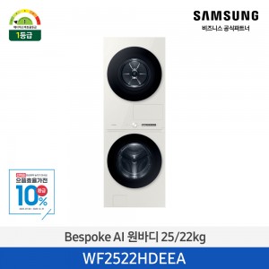 [12개월무이자]★으뜸효율★[삼성] BESPOKE AI 원바디 (세탁기25kg+건조기22kg)/그레이지)(1등급, 올인원 컨트롤) [WF2522HDEEA] 10월 요약정보 및 구매