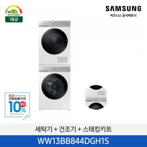 [12개월무이자]★으뜸효율★[삼성] (에너지 소비 효율 1등급) BESPOKE 그랑데 AI 슬림 세탁기 13kg + 건조기 9kg/ 화이트 [WW13BB844DGH1S] 10월 요약정보 및 구매