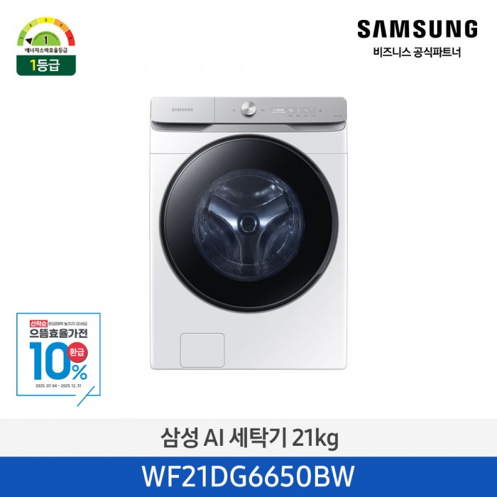 [12개월무이자]★으뜸효율★[삼성][21kg] 삼성 AI 세탁기 21KG 화이트 [WF21DG6650BW] 10월 요약정보 및 구매