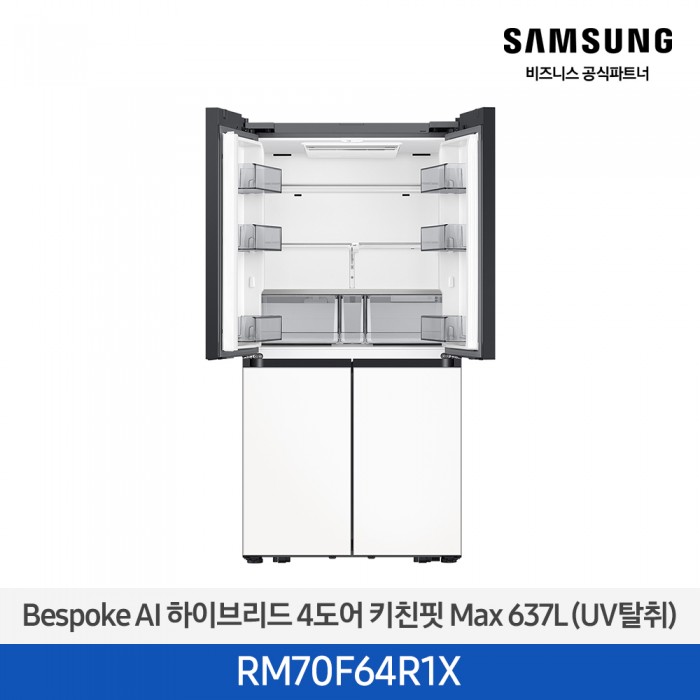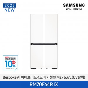 [12개월무이자]★으뜸효율★[삼성][25년NEW] 삼성 Bespoke AI 하이브리드 4도어 키친핏 Max 637L 새틴화이트 (UV탈취)) [RM70F64R1X] 10월 요약정보 및 구매