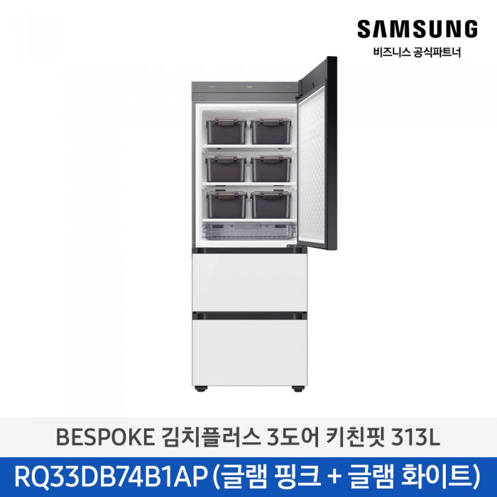 • [12개월무이자]★으뜸효율★[삼성][313리터][24년 NEW] BESPOKE 김치플러스 3도어 키친핏 313L [RQ33DB74B1AP25] 10월