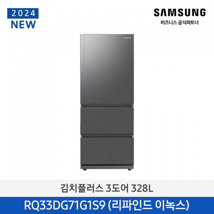 • [12개월무이자][삼성][24년NEW][328리터]삼성 김치플러스 3도어 328L 메탈 리파인드 이녹스[RQ33DG71G1S9] 10월