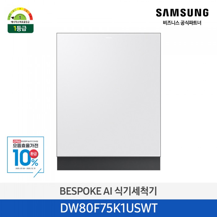 [12개월무이자]★으뜸효율★[삼성][싱크대 기본리폼 무료]2025 NEW 삼성 BESPOKE AI 식기세척기 빌트인 14인용 새틴 화이트(DW80F75K1USWT), 새틴 베이지(DW80F75K1USBT)(열풍건조, 필터 내장형) 10월 요약정보 및 구매