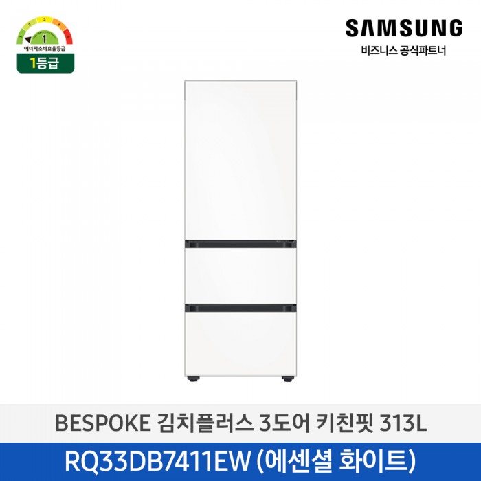 [삼성][313리터] BESPOKE 김치플러스 3도어 키친핏 313L 에센셜 화이트(1등급)(메탈쿨링) [RQ33DB7411EW] 4월 요약정보 및 구매